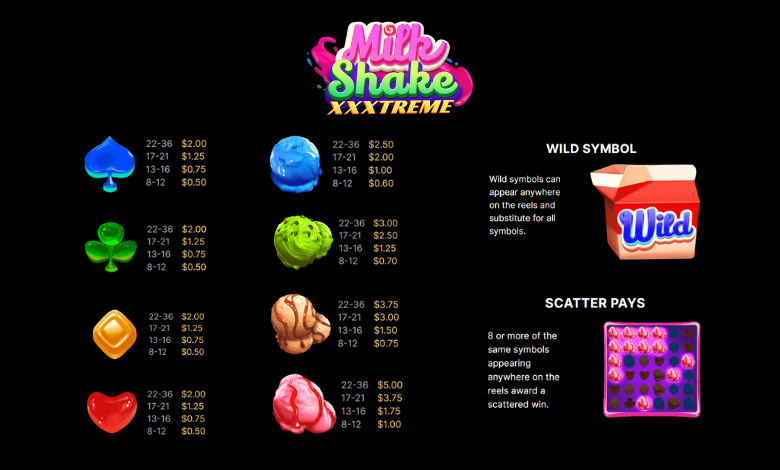In terms of volatility, Milkshake XXXtreme falls into the medium to high volatility category. This means you can expect less frequent wins, but when they do occur, they tend to be more significant. This combination of RTP and volatility creates an exciting, risk-reward dynamic, where players might experience longer stretches without wins, but the potential for larger payouts makes the wait worth it.