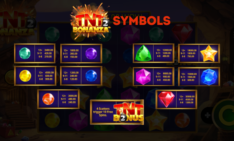 In TNT Bonanza 2, the symbols are divided into high-value and low-value categories, with payouts based on how many matching symbols you land. Here’s a breakdown of the key symbols and their rewards: